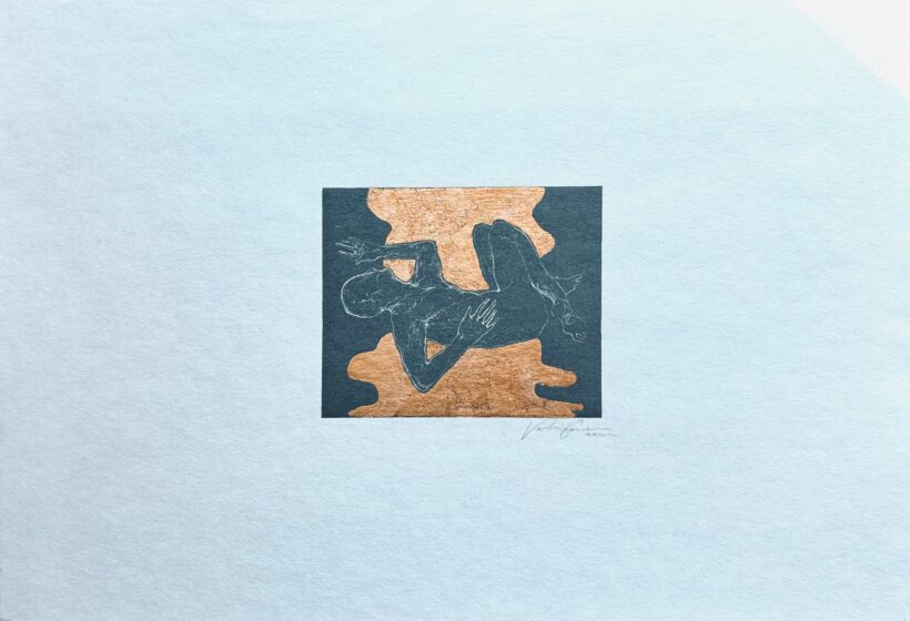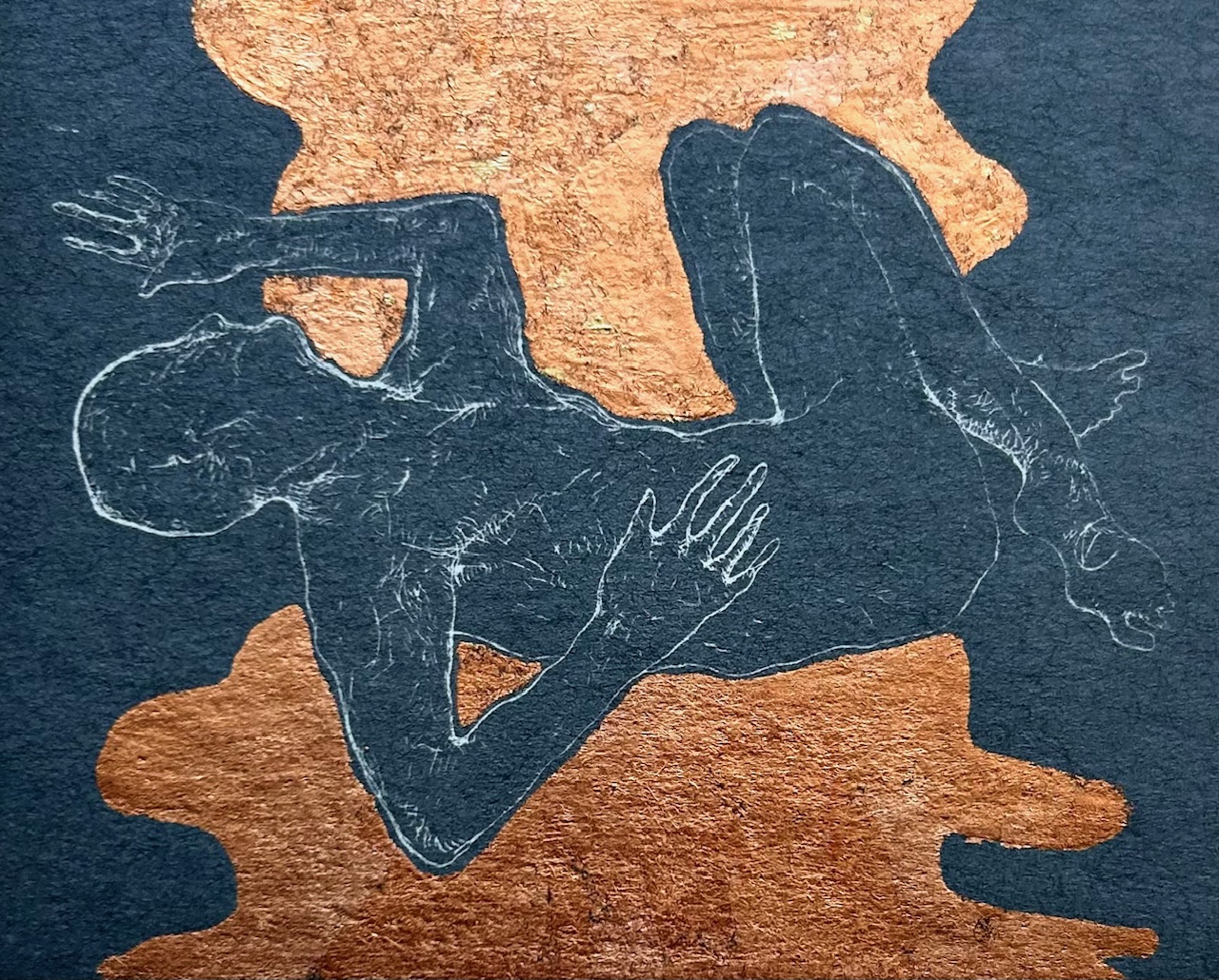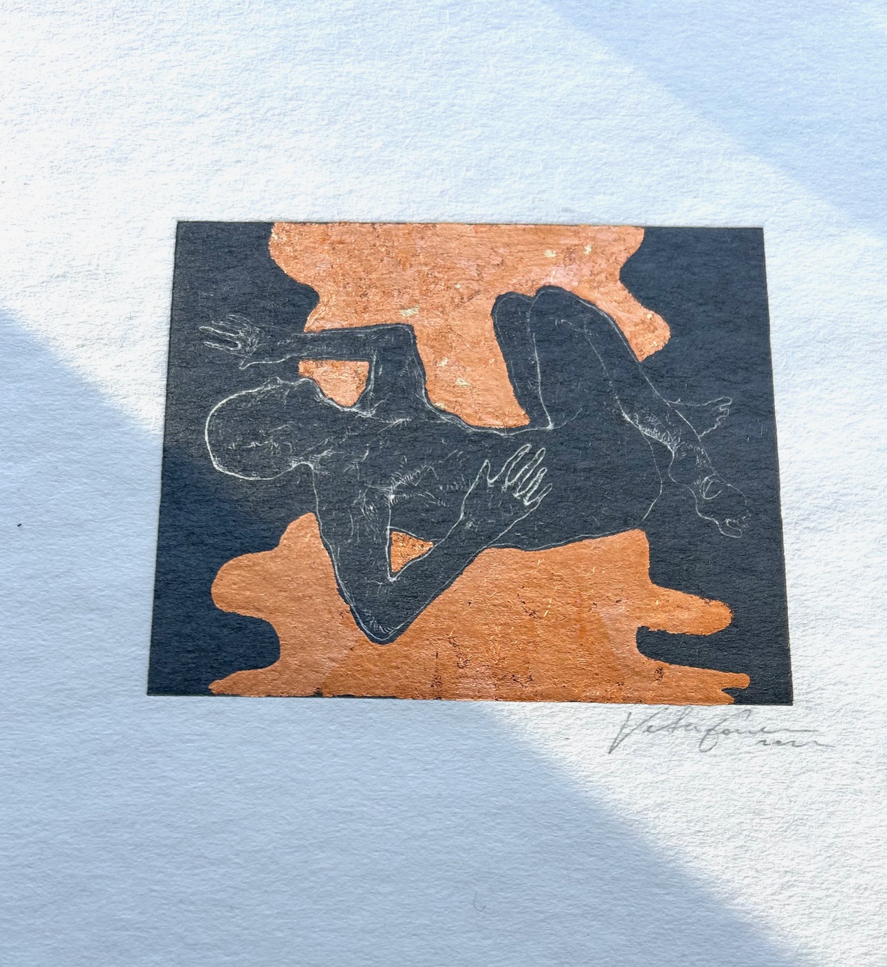 Dark grey oil ink and copper leaf